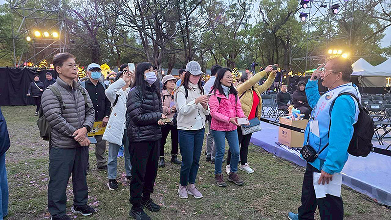 在燈會現場,另一群幕後功臣則是約 50 位的導覽志工。面對連假期間水洩不通的人潮,志工們即便嗓音沙啞,仍堅持透過麥克風,全力解說。導覽內容涵蓋了環保永續的「馬上鑽」燈組、結合在地產業的「花開富貴」以及農業永續「馬力食足」等,成功讓民眾從「看熱鬧」進階到「看門道」。
