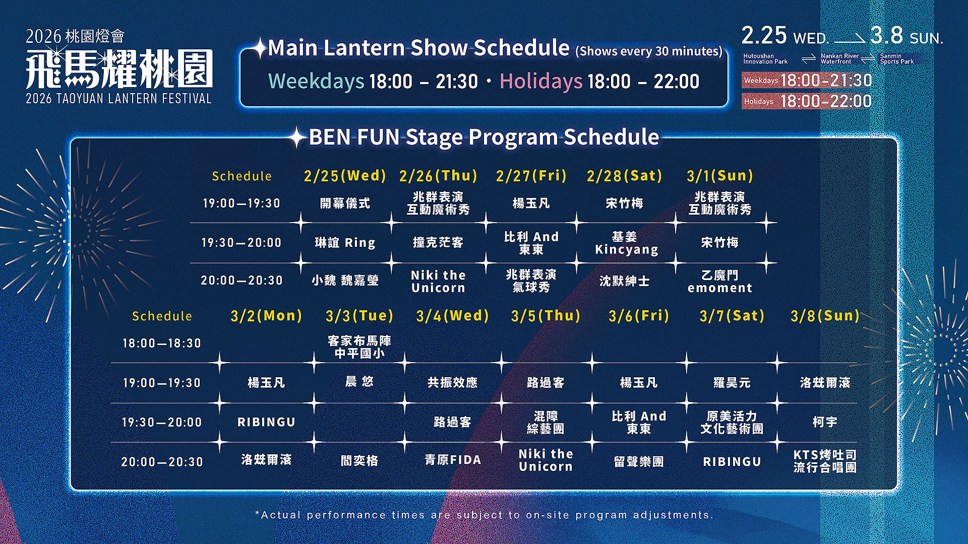 Event Location: Designated performance spots within the festival zones (Future Light Zone / dtto friends Land)